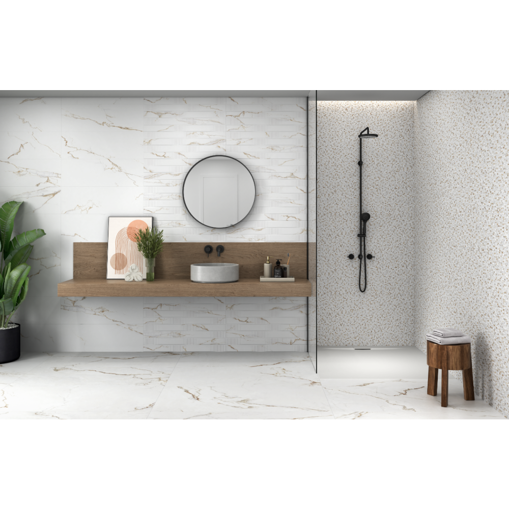 Faianta Alba Mat Gold de la Emigres este alegerea perfecta pentru cei care doresc sa aduca un strop de rafinament in interiorul casei. Cu un finisaj mat si un aspect elegant de marmura, aceasta faianta este ideala pentru orice spatiu, oferind un aer modern si sofisticat.