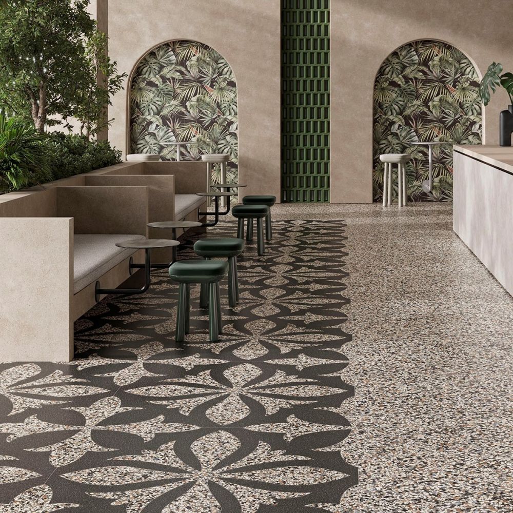 Gresia Ducale Mix aduce un design sofisticat, îmbinând estetica clasică a mozaicului terrazzo. Fundalul în nuanțe calde de bej și crem contrastează elegant cu modelul floral/geometric, realizat în negru antracit. Placa din porțelan este ideală pentru a crea o pardoseală de efect, potrivită atât pentru spațiile rezidențiale, cât și pentru cele comerciale. Rezistentă și ușor de întreținut, transformă orice încăpere într-o declarație de stil.