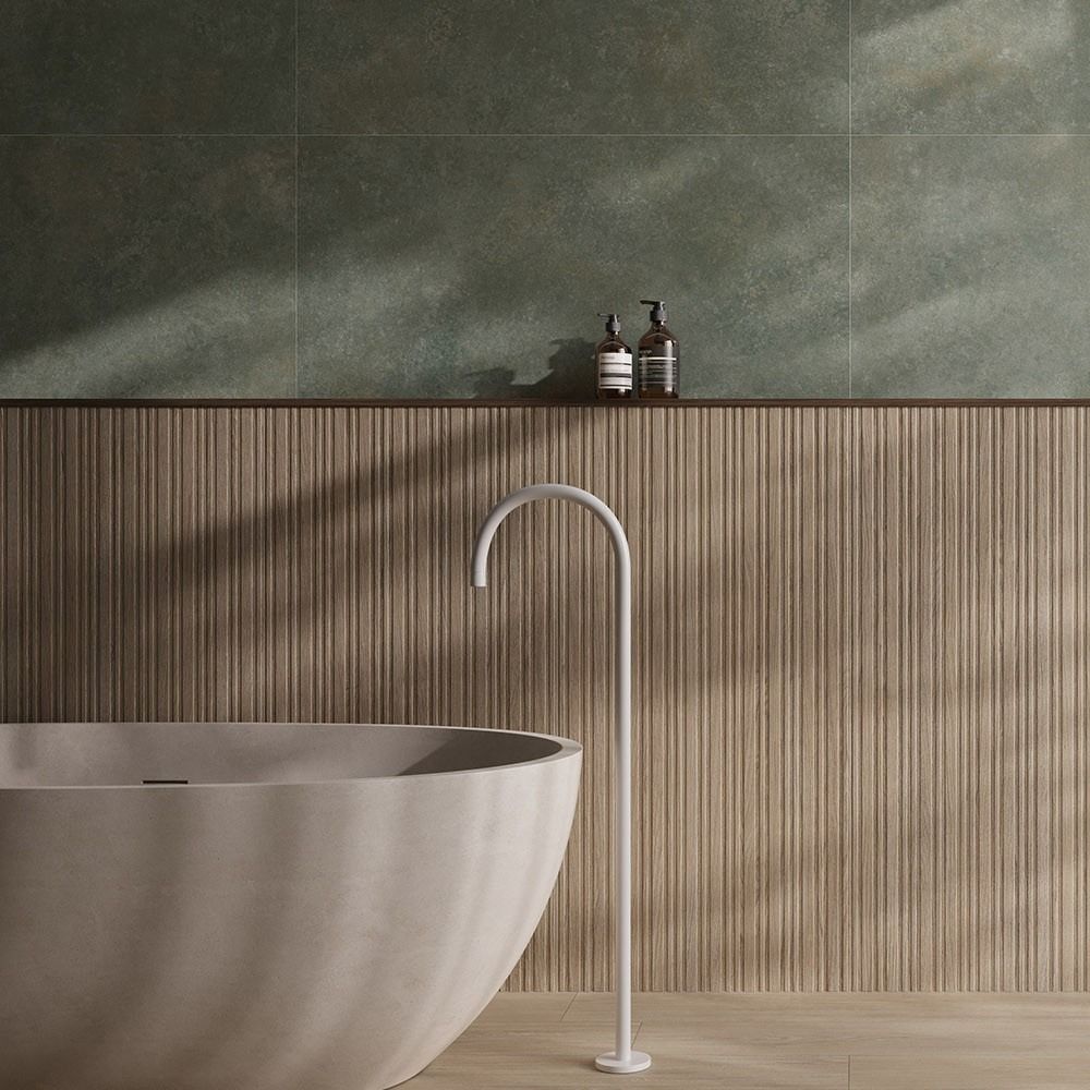 Placa Origin Sage este o placă ceramică rafinată cu aspect de ciment pigmentat în tonuri calde de verde salvie, modernă și subtil contemporană. Nuanța sa naturală aduce echilibru vizual și senzație de calm, fiind ideală pentru spații minimaliste, spa-inspired sau interioare sofisticate cu accente naturale. Textura mata și designul uniform permit combinarea facilă cu lemn, piatră sau elemente metalice, oferind un fundal elegant și atemporal pentru băi, bucătării sau zone comerciale premium.