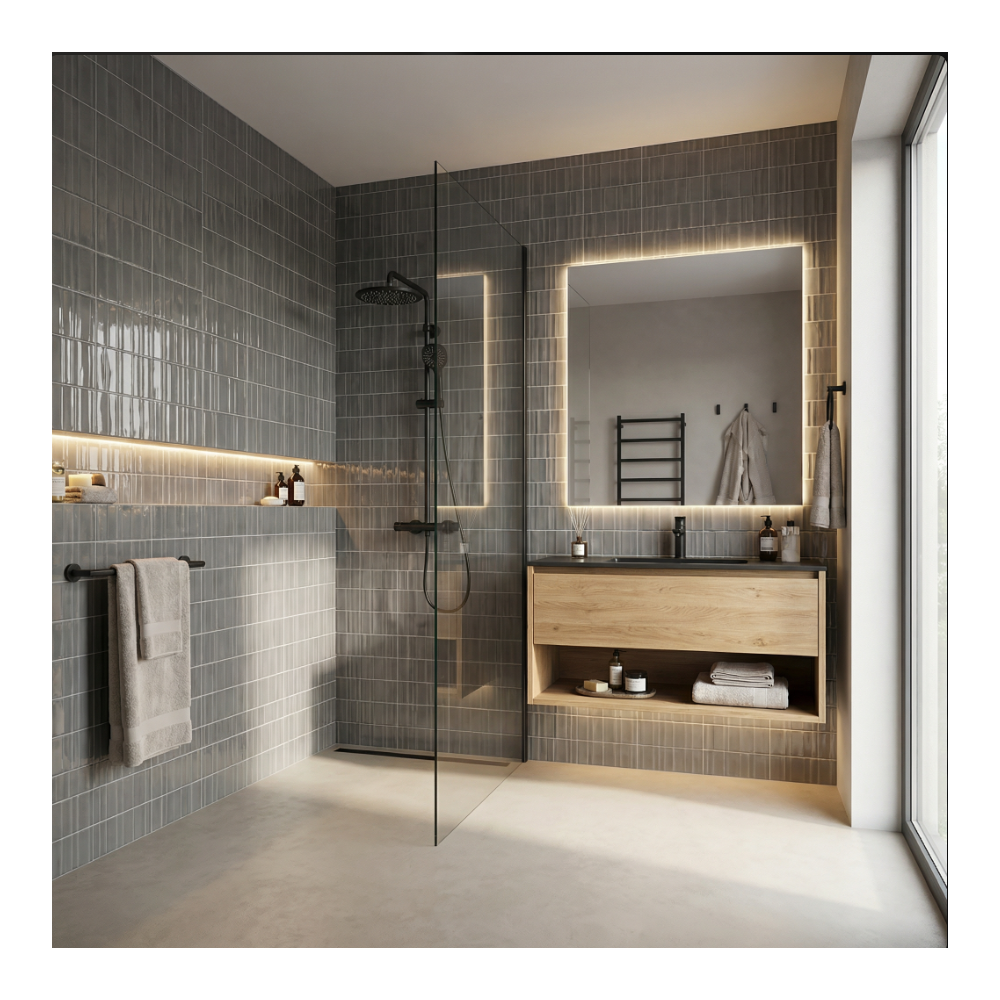 Colecția Imagine dezvăluie un rafinament rar, în care textura fină și luciul delicat se împletesc pentru a crea un perete ce pare pictat în straturi de lumină și umbre. In acest ambient, tonul cald de taupe, profund și sofisticat, este accentuat de modelul herringbone, care conferă spațiului o dinamismă aristocratică, amintind de interioarele marilor reședințe europene. Fiecare plăcuță glossy captează lumina și o reflectă cu o eleganță subtilă, adăugând profunzime și un aer prețios încăperii. În combinație cu mobilierul modern și detaliile de inspirație couture, Imagine Durstone transformă orice ambient într-un tablou luxos, în care fiecare detaliu respiră stil, finețe și opulență discretă.
