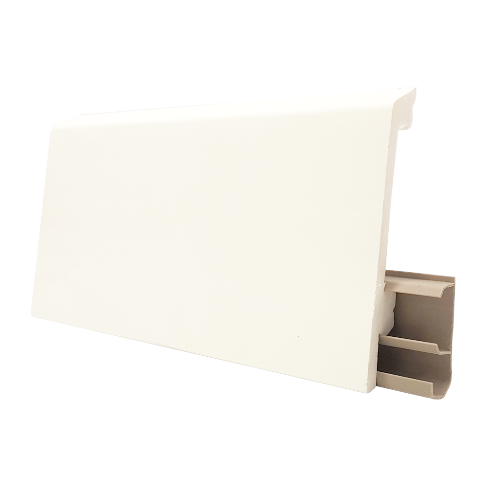 Descriere / Plinta parchet polimer 80 mm Alb Mat cu sina de perete 2 ml
