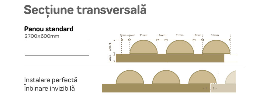 Nota: Produsul se comercializează exclusiv la multiplu de cutie. O cutie include 2 panouri de 0,6x2,7m.