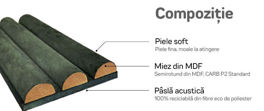 Structură din MDF de înaltă calitate, cu lamele semirotunde, conforme standardului CARB P2